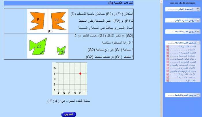 في إطار نشر سلسلة من الموارد الرقمية والسمعية البصرية والحقائب البيداغوجية في النافذة التي تم إنشاؤها بالموقع الإلكتروني "جديد انفو" بإسم "التعليم عن بعد"، اليكم رابط يتضمن دروس وتمارين تفاعلية لمادة الرياضيات للسنة السادسة من التعليم الابتدائي:(اضغط على الرابط )