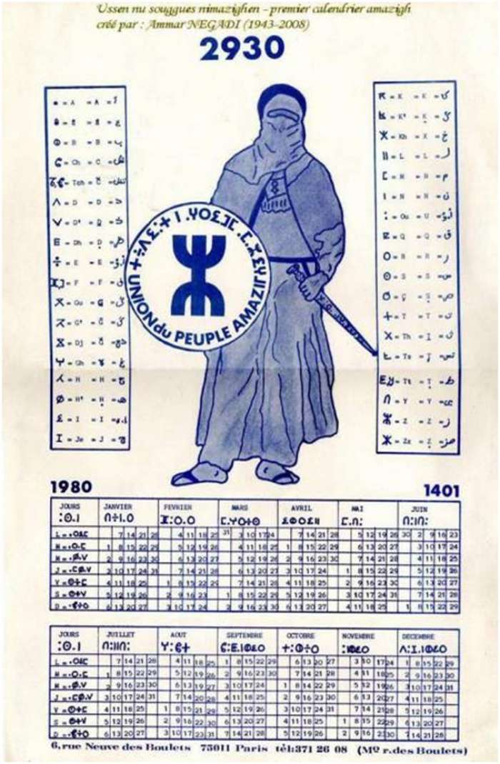 اول يومية للتقويم الامازيغي التي وضعها عمار النكادي الملقب بعمار الشاوي، وذلك سنة 1980 ويمكن ملاحظة اقتران يوم فاتح يناير 1980 باليوم الأول من السنة الامازيغية 2960 لان النكادي عمد إلى مطابقة اليومية الامازيغية بالسنة الميلادية آنذاك
