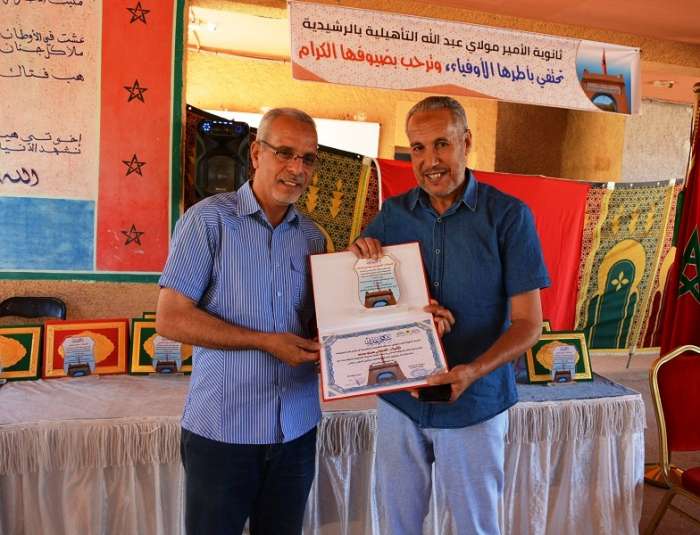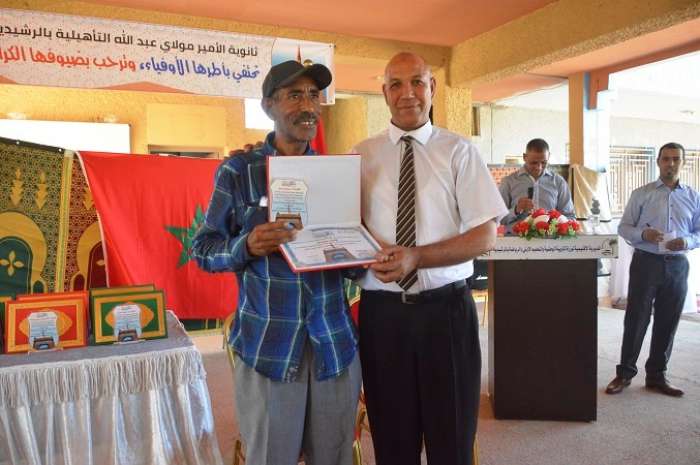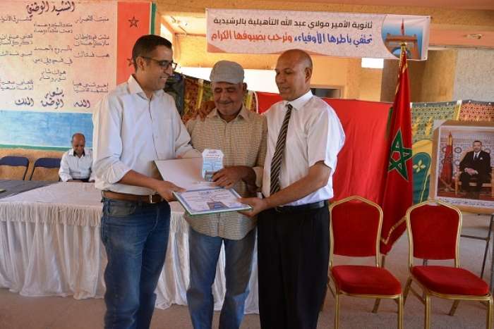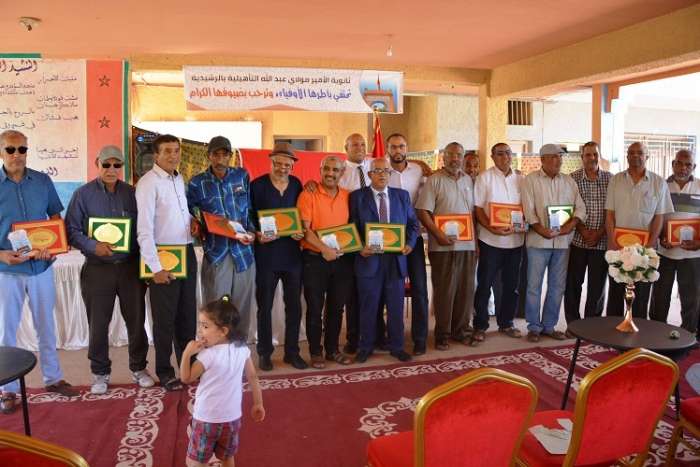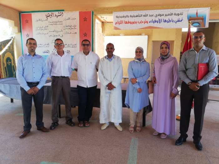 احتفت مؤسسة الامير مولاي عبد الله التأهيلية بمدينة الرشيدية بشراكة مع الاكاديمية الجهوية للتربية والتكوين والمديرية الاقليمية بالرشيدية و جمعية آباء وأمهات وأولياء التلاميذ و المجلس البلدي بالرشيدية يوم الثلاثاء 28 يونيو 2022 ابتداء من العاشرة صباحا بالأساتذة المحالين على العمر الذهبي وبالأطر الادارية و التربوية الذين انتقلوا للعمل بمؤسسات أخرى وهو احتفال رمزي بذاكرة مجموعة من رجال ونساء التعليم والذين تركوا بصماتهم في المؤسسة بأعمالهم وسلوكياتهم وعلاقاتهم التربوية مع المتعلمين ومحيطهم، وكانت المناسبة سانحة لإنبات ثقافة الاعتراف لما قدموه من خدمات، تدخل في إطار الواجب والتطوع والتضحية والمسؤولية ، والفعل الذي قامت به المؤسسة فيه اعتزاز كبير بذوات رجال التربية وأسرهم من خلال استحضار سيرهم وسير مَن تتلمذ على أياديهم والأجيال التي عاشرتهم في العمل و الدراسة أو في الحياة الاجتماعية .