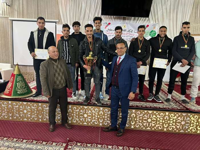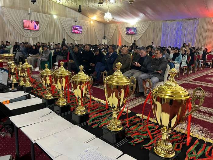 نظمت إدارة الحي الجامعي بالرشيدية يوم الجمعة 29 دجنبر الجاري بقاعة الحفلات الزردة الحفل الختامي للأنشطة الثقافية والرياضية التي تم تنظيما خلال الأشهر القلية الماضية تخليدا للذكرى الثامنة والستين لعيد الاستقلال المجيد وذلك تحت شعار:* "تنمية الشخصية الفكرية والرياضية لرجال الغد استمرار لكفاح الأجداد"*. تحت اشراف مدير الحي الجامعي، إلى جانب حضور ممثلين عن الكليات وأساتذة جامعين من مختلف التخصصات، وموظفي الحي الجامعي، وما يقارب 300 طالب وطالبة.