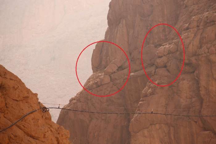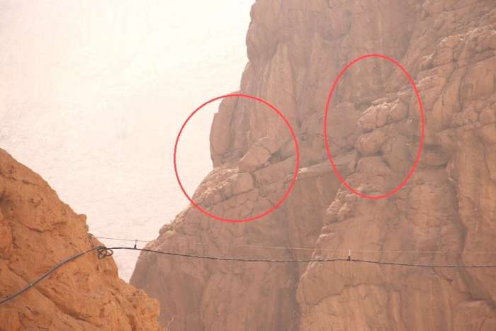 حيث رصدت كاميرا الجريدة في مضايق تودغى وجود أحجار متصدعة ومهيئة للسقوط في أي لحظة حيث يكفي فقط أن تحركها الرياح أو التساقطات المطرية، أو الطيور لتسقط، مما يعرض حياة الزوار وممتلكاتهم لخطر داهم، وتستدعي تدخلا عاجلا لمعالجة هذه المشكلة.