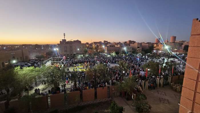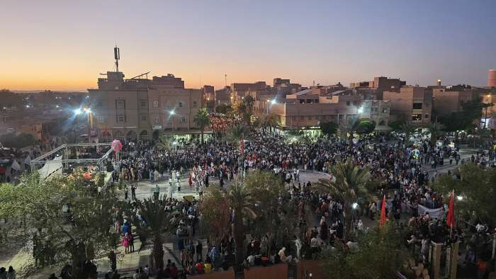 المسيرة عرفت مشاركة وازنة بتظيم محكم وتعبئة شاملة حيث انطلقت من القاعة الرياضية المغطاة بحي السلام ، مرورا بكل من شارع مولاي إسماعيل و شارع محمد الخامس، وصولا إلى ساحة الجيش الملكي بهتافات جسدت روح الانتماء، وترسيخ قيم الوحدة الوطنية تحت السيادة الرشيدة لصاحب الجلالة الملك محمد السادس نصره الله وايده.