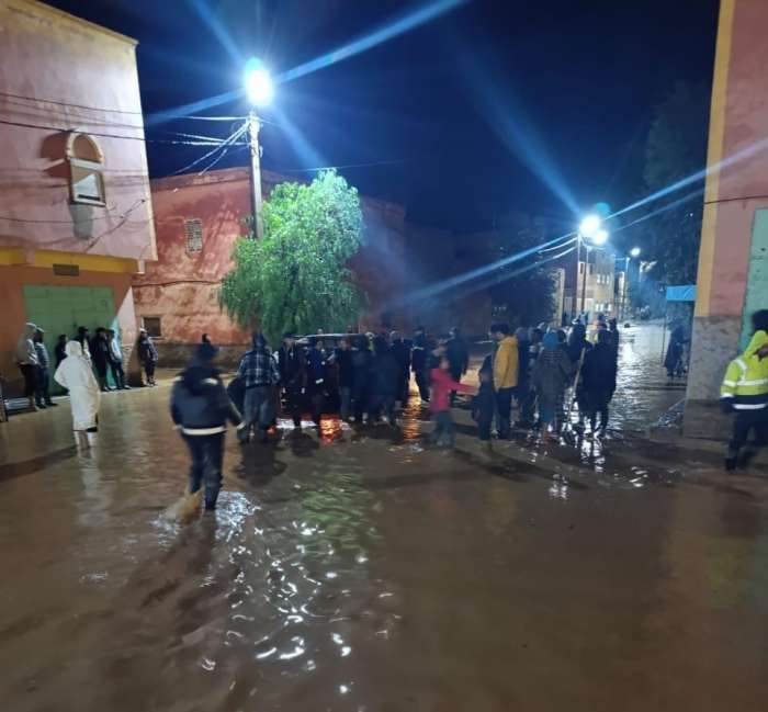 قصر المنقاربة بالجرف بإقليم الرشيدية عرف تدفقا غير مشهود لمياه السيول و مرت ليلة بيضاء البارحة السبت 13 دجنبر الجاري على الساكنة بسبب المياه التي خلفت دمارا كبيرا ببعض المباني السكنية وخسائر في الممتلكات وأثارت الرعب والخوف لدى الساكنة .