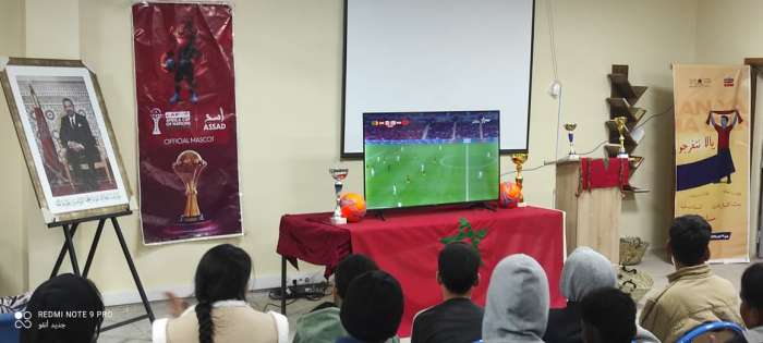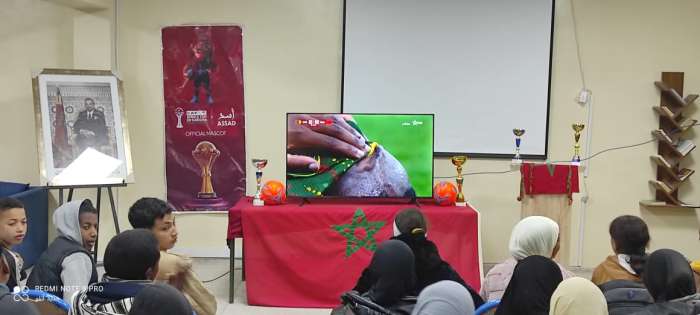 في خطوة نوعية بمؤسسة الحسن الأول بأوفوس في إطار مباراة المغرب والكامرون التي خلقت التشكيك لدى المتتبعين في صعوبة هزم فريق الكامرون اليوم الجمعة 9 يناير الجاري ،المباراة التي تابعها الجميع كل بطريقته ووسيلته حيث ارتأى الطاقم الإداري للمؤسسة بأوفوس أن يخلق حدث الفرجة ويدخل الفرحة باللمة التربوية للمتعلمين والمتعلمات بالقسم الداخلي في الوقت الذي تكاثفت فيه فروض المراقبة المستمرة في الأسدوس الأولى.