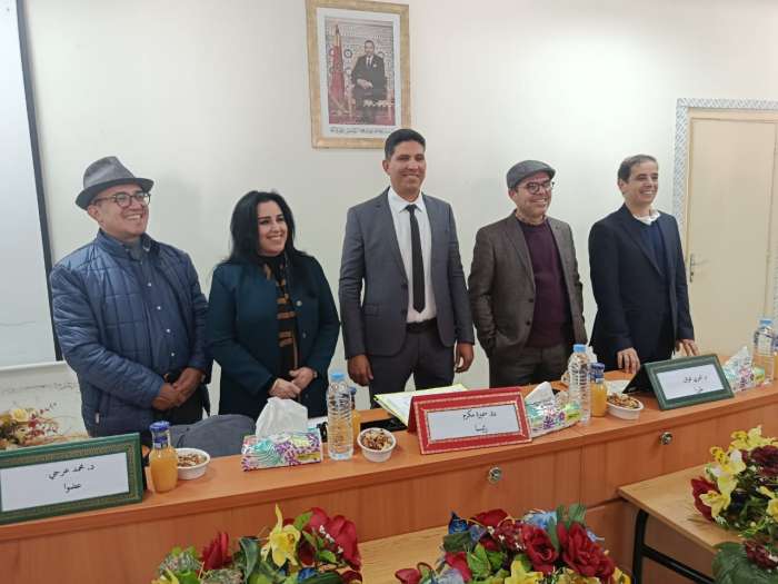 افتتحت جلسة المناقشة من رئيسة اللجنة ، تلاها عرض الطالب الباحث ثم تدخلات السادة الأساتذة أعضاء لجنة المناقشة وذل في جو علمي و أكاديمي وبعد المداولة قررت اللجنة اعتبار الطالب الباحث علي تاوشيخت ناجحا بميزة مشرف جدا.
