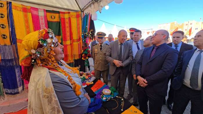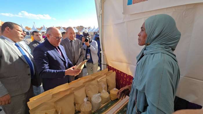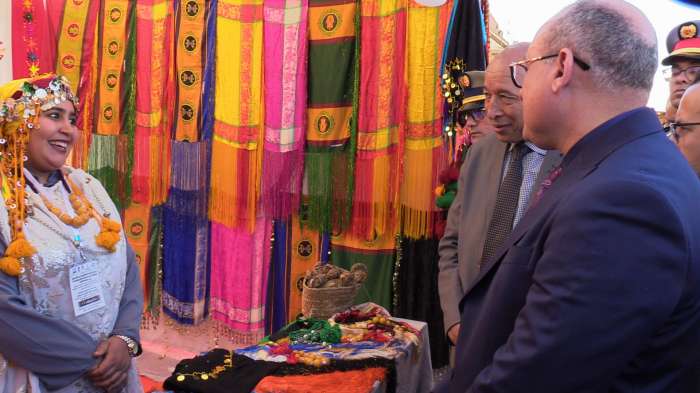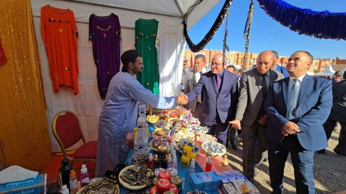 الكاتب العام والوفد المرافق له زاروا المعرض خيمة خيمة وقدمت لهم الشروحات حول هذه المنتوجات، كما استمع الى ما تعانيه العارضات والعارضون في ما يتعلق بالدعم والتسويق.