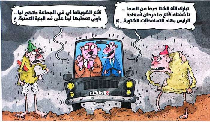جديد أنفو: الأمطار تفضح البنية التحتية المغشوشة. "الله يعطينا الشتا على قد البنية التحتية".